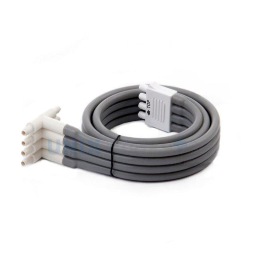 Т-коннектор имеет 4 канала, по которым подаваемый воздух распределяется на 2 манжеты. Поставляется вместе с силиконовым шлангом и штекером и готова для подключения к манжетам и аппарату. Длина шланга около 1 метра, что позволяет расположить аппарат на комфортном расстоянии.